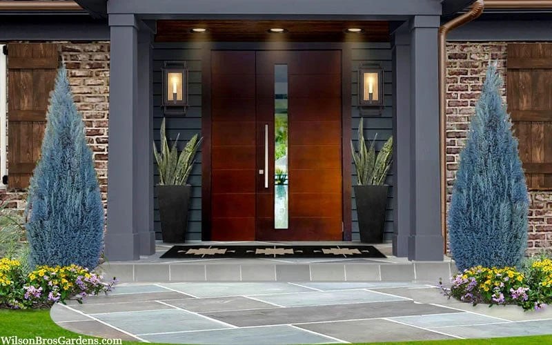 Growing 6 to 8 feet tall and 2 to 2.5 feet wide over time, the Blue Surprise Lawson Cypress is ideal for use as vertical accent or focal point specimen in smaller garden spaces. It is excellent for use as an accent or to frame an entrance in home foundation plantings. Where space allows, spaced groupings of three are nice. Also a fine solo or centerpiece in containers combined with other plants that like sun and a well-drained soil. A fine addition to rock gardens, conifer gardens, blue theme gardens and Asian or Zen gardens.